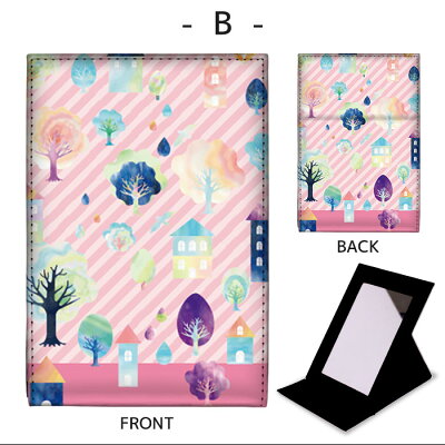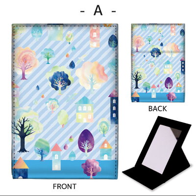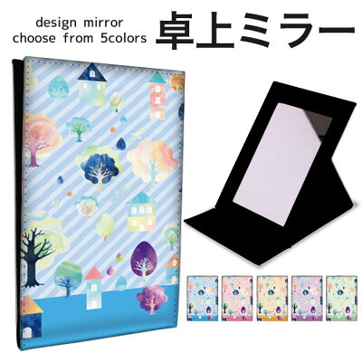 折りたたみ ミラー 卓上ミラー 鏡 メイク直し 手鏡 コンパクトミラー オリジナルデザイン 化粧鏡 お洒落 スタンドミラー 置き鏡 レザー 水彩風 北欧風 ボーダー ななめ