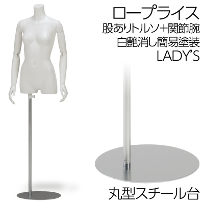 ロープライストルソー 上半身 股ありマネキン 可動関節腕 樹脂製 白艶消し簡易塗装エコボディ レディース 7号サイズ