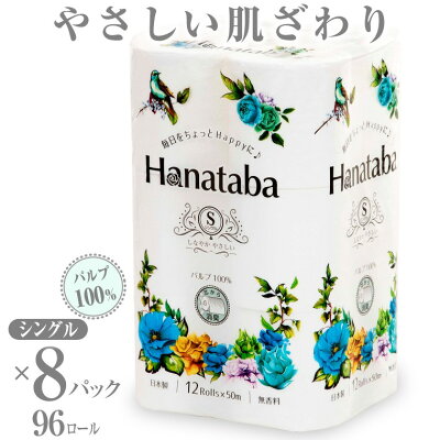 【ふるさと納税】トイレットペーパー Hanataba シングル 12ロール 8パック パルプ 100% 消臭 無香料 フェアリーエンボス 国産 日用品 生活用品 生活雑貨 防災 備蓄 丸富製紙 富士市 無地・無色 96ロール 香り・消臭 パルプ配合 (a1567)