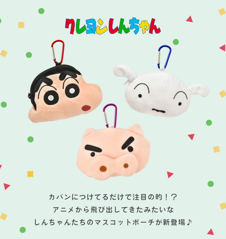 Details 【カラビナぬいぐるみファスナーポーチ】 カバンにつけるだけで注目の的!? アニメから飛び出してきたみたいなしんちゃんたちのマスコットポーチが新登場♪